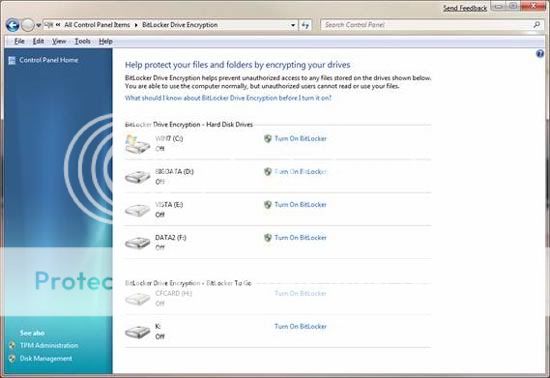 BitLocker được quản lý thông qua một applet trong Control Panel, xem thể hiện trong hình.